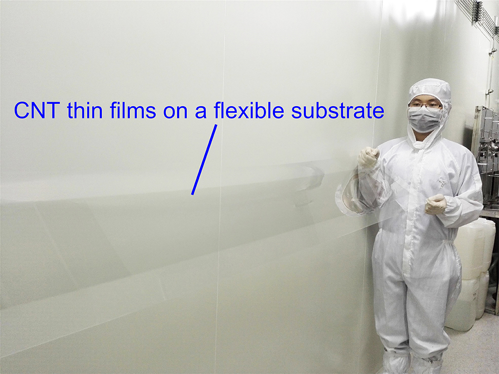 Fig.1: Meter-scale single-wall carbon nanotube thin films.
