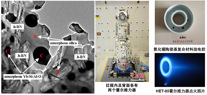 图1. 氮化硼陶瓷基复合材料在“天和”核心舱霍尔推力器上成功应用。
