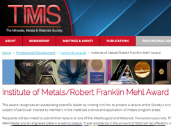 2022年2月27日-3月3日,美国矿物、金属和材料学会(The Minerals, Metals & Materials Society,简称TMS)第151次年会在美国加利福尼亚州安纳海姆市举行。中国科学院院士、沈阳材料科学国家研究中心主任卢柯荣获2022年度金属学院讲座奖/罗伯特•富兰克林•梅尔奖(Institute of Metals/Robert Franklin Mehl Award,简称富兰克林•梅尔奖)。
