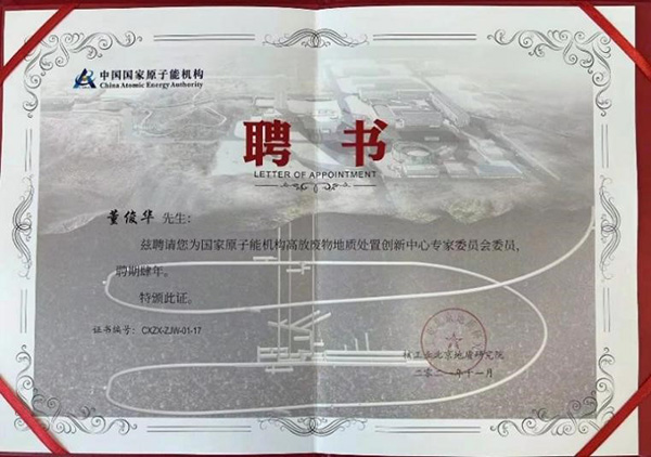 2021年11月19日,国家原子能机构在核工业北京地质研究院召开了国家原子能机构高放废物地质处置创新中心(以下简称创新中心)首届理事会成立大会,中国科学院金属研究所当选为理事单位,沈阳材料科学国家研究中心董俊华研究员当选为创新中心的首届理事和专家委员会委员。