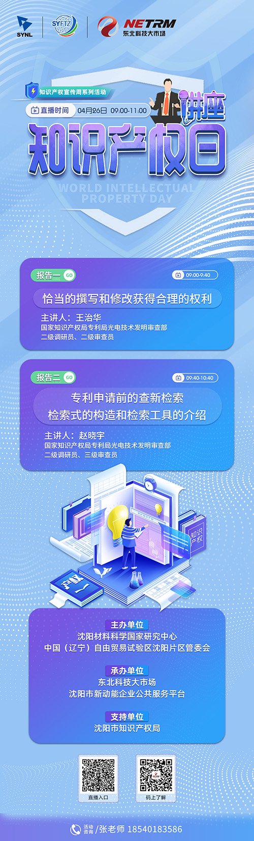4月26日上午,沈阳材料科学国家研究中心(以下简称“国家研究中心”)和中国(辽宁)自由贸易试验区沈阳片区管委会主办,由东北科技大市场和沈阳市新动能企业公共服务平台承办,并且得到沈阳市知识产权局鼎力支持的“4.26”世界知识产权日讲座成功在线上举办。