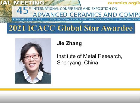 张洁研究员获得美国陶瓷学会工程陶瓷部“2021Global Star Award”