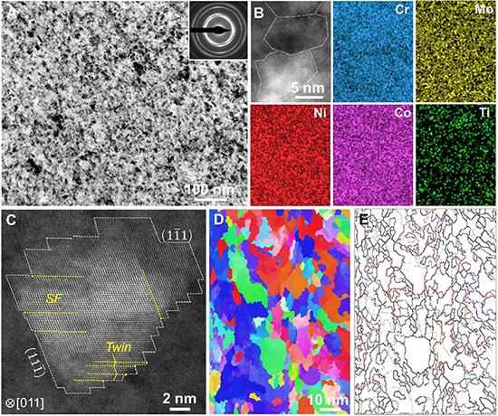 图1:具有弛豫晶界的纳米晶MP35N合金的结构