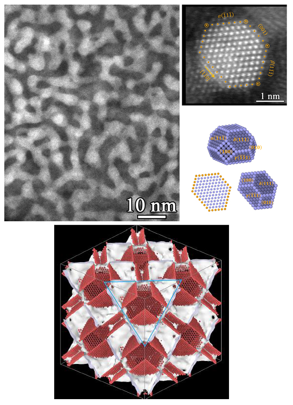 中国科学院金属研究所沈阳材料科学国家研究中心纳米金属科学家工作室李秀艳, 卢柯研究员,周鑫特别研究助理与上海交通大学金朝晖教授合作,利用大量精细实验并结合模拟计算发现,当晶粒尺寸降低的几纳米时,纯金属铜多晶体会形成一种新型亚稳结构 --- Schwarz crystal(受限晶体)结构,这种具有极小界面(minimalinterface)的三维结构表现出极高的热稳定性和力学稳定性,在纯铜的熔点以下不发生晶粒长大,其强度接近理论强度。这一重要发现表明除非晶固态外,在多晶体金属在晶粒极细时还存在另外一种亚稳固体状态,其稳定性甚至远高于非晶固体。