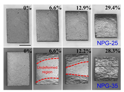 沈阳材料科学国家研究中心的刘凌志副研究员(第一作者)、张烨元博士研究生、解辉特别研究助理和金海军研究员(通讯作者)研究发现,通过进一步提高而非降低相对密度,可在纳米多孔金中复现由非均匀变形诱发的压缩应力平台。这一研究成果以“Transition from homogeneous to localized deformation in nanoporous gold”为题最近发表于Physical Review Letters期刊。