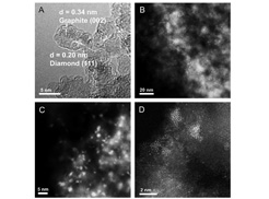 近日,沈阳材料科学国家研究中心刘洪阳研究员、刁江勇副研究员和博士研究生王琳琳等人与北京大学马丁教授、香港科技大学王宁教授、中科院上海应用物理所姜政研究员以及中科院山西煤化所温晓东研究员等团队合作,通过调控金属Pd与富缺陷石墨烯载体之间的相互作用,在纳米金刚石/石墨烯碳载体上成功构建亚纳米尺度全暴露Pd3金属团簇催化剂,该催化剂实现低温下(350°C)高效催化乙苯直接脱氢制苯乙烯。